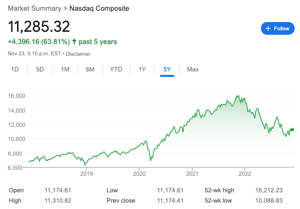6. In comparison the NASDAQ Composite rose by 64% during the last 5 years